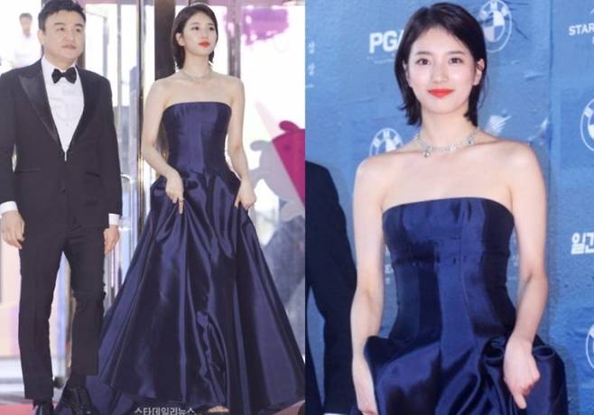 • 2017년: 단발머리 수지 is 뭔들! 드레스 허리 라인이 살짝 아쉬웠다는 의견도 있었지만, 수지가 다 커버했지!