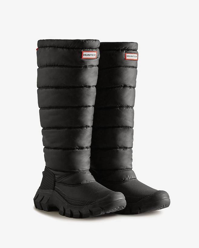 레인부츠 명가 헌터의 오리지널 인트레피드 톨 스노우 부츠. 도톰한 패딩 소재와 무릎 아래까지 내려오는 기장으로 극심한 한파에도 끄떡없는 보온성을 자랑한다. 롱부츠지만 신축성 좋은 조임끈 처리로 신고 벗기 편하다.
