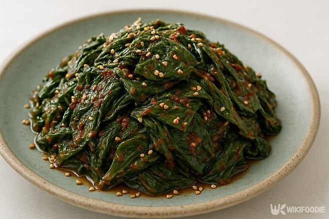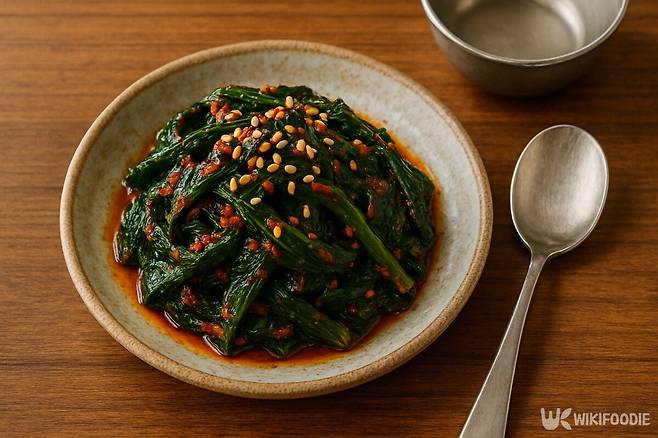 6. 무친 나물 위에 통깨를 뿌려 완성한다.