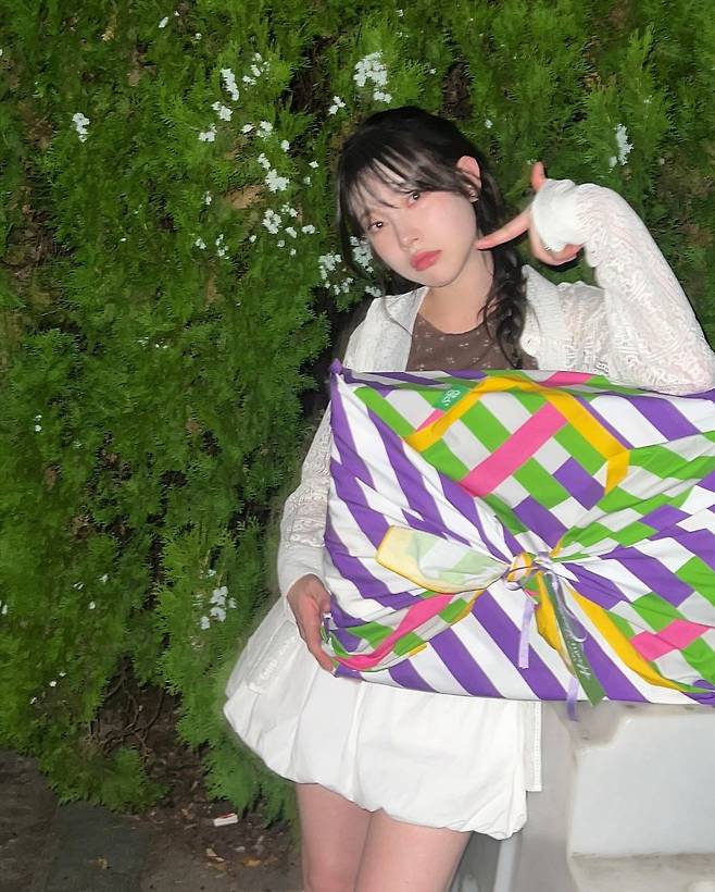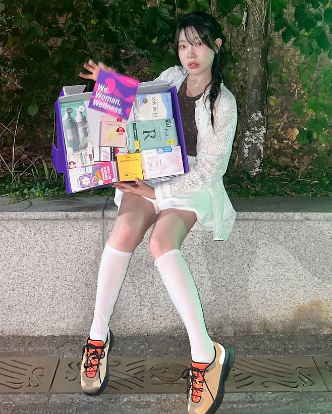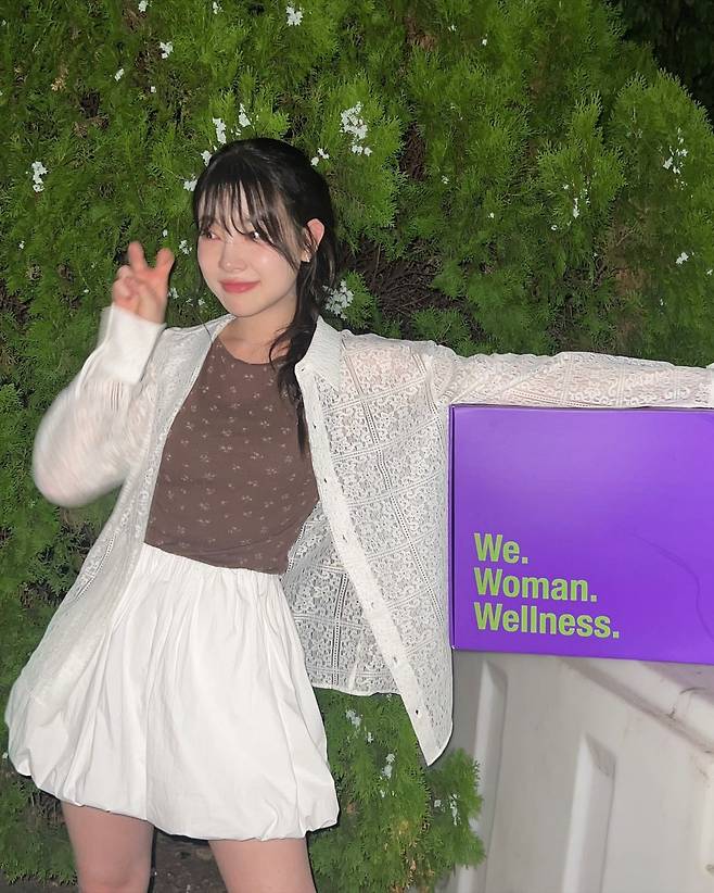 사진 속 김아영은 브라운 패턴이 있는 티를 이너로 입고 화이트 미니스커트와 가디건을 걸쳐 러블리한 코디를 선보였다. 화이트 롱삭스와 운동화를 신어 캐주얼함도 동시에 선보이는 코디를 자랑했다.