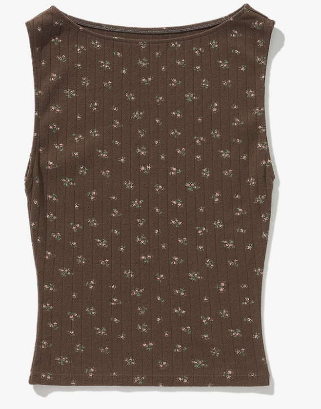 사진 속 티 정보 - 플랙 우먼 리틀 플라워 슬리브리스 탑 브라운