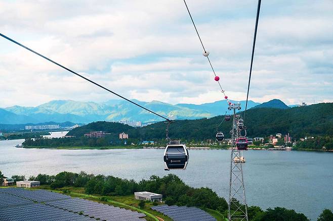 케이블카를 타고 올라가면 춘천의 산, 호수, 도시가 어우러진 풍경을 한눈에 감상할 수 있다.