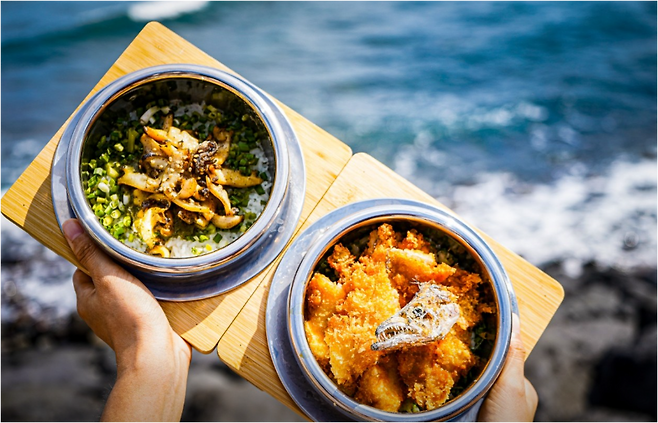 점심에는 솥밥, 회국수, 돈까스를 저녁에는 감성 넘치는 노을을 보면서 신선한 모둠회, 모둠 해산물을 먹으며 만족스러운 식사 하고 바로 옆 구름다리에서 인생샷을 찍을 수 있어요. 연예인 지인들뿐 아니라 동네 주민, 해녀들까지도 자주 들르는 ‘로컬 맛집’이라고 하는데요. KCM이 직접 회를 썰고 메뉴를 추천해주는 모습도 종종 목격된다고 해요.