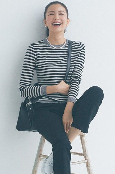 햇살이 부드럽게 스며드는 공간에서 한 여성은 잔잔한 미소를 띠고 있다. 미니멀한 블랙 티셔츠에도, 자연스럽게 풀어 헤친 화이트 셔츠에도 그녀의 존재감을 배가시키는 건 바로
