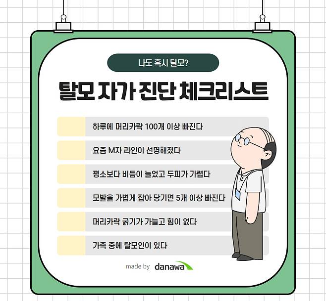 단순히 머리카락이 많이 빠지는 것 같은 느낌만으로는 탈모라고 부를 수 없다. 탈모 자가진단 테스트를 통해 진짜 치료가 필요한 탈모증인지 아닌지 간단하게 살펴보자. 물론 자가진단은 가볍게 훑는다는 정도로만 받아들여야 한다. 정확한 진단은 전문가와의 상담이 반드시 필요하다. 빠지는 양이 확연히 늘었다면 보통 탈모가 맞긴 하다.