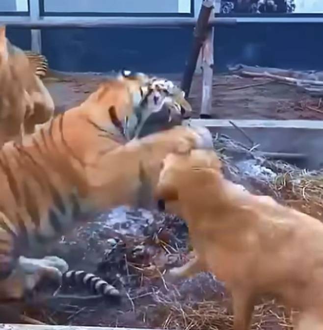 아니 글쎄 호랑이 볼살을 사정없이 물어버린 리트리버가 있는데요