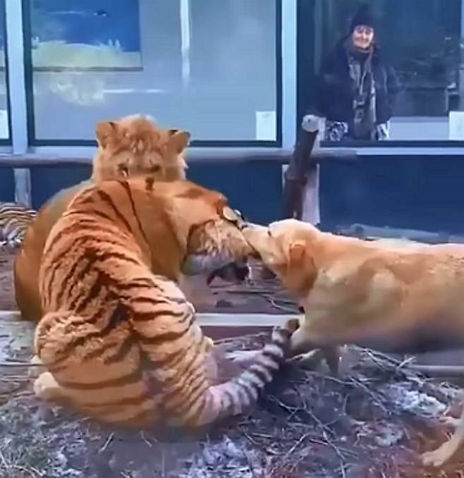 알고보니 호랑이를 리트리버가 키웠다는군요