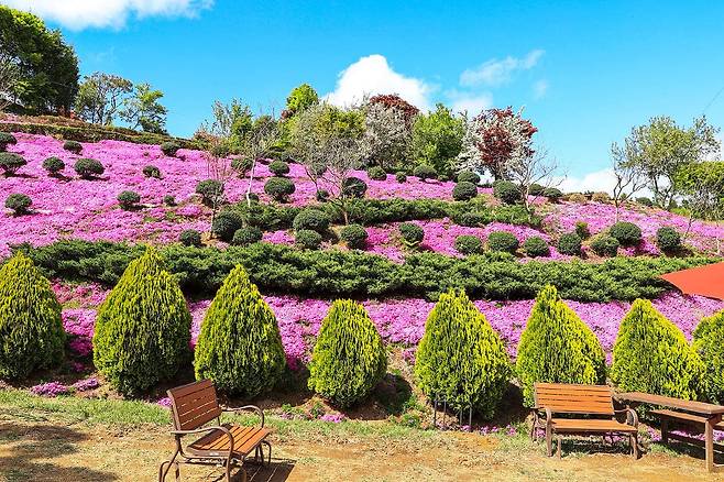 무려 축구장 24개 크기에 달하는 이 거대한 동산은, 분홍빛 꽃잔디가 마치 양탄자처럼 펼쳐져 방문객들의 시선을 단숨에 사로잡는다.
