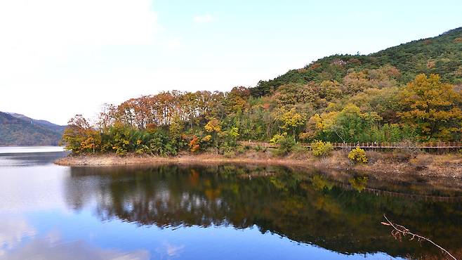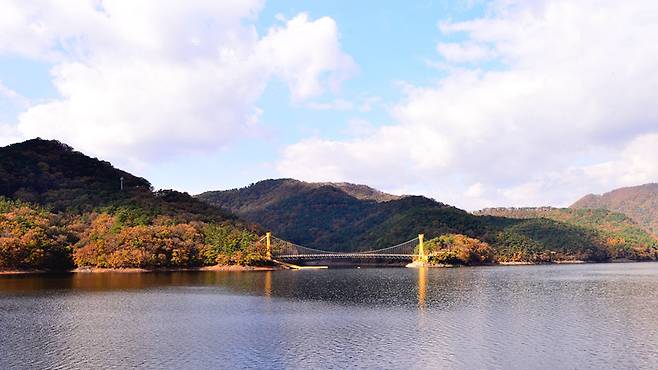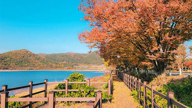 가을이면 장성호 수변길은 마치 물감을 풀어놓은 듯한 풍경으로 변합니다. 특히 출렁다리와 단풍이 어우러지는 장면은 SNS에서도 인기 있는 포토스팟으로 유명합니다.