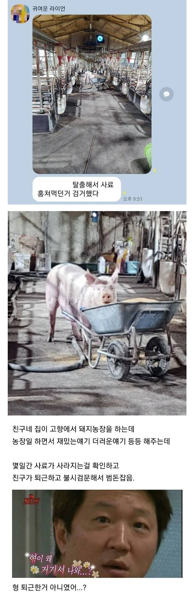 사료 몰래 먹다 들킨 돼지 표정