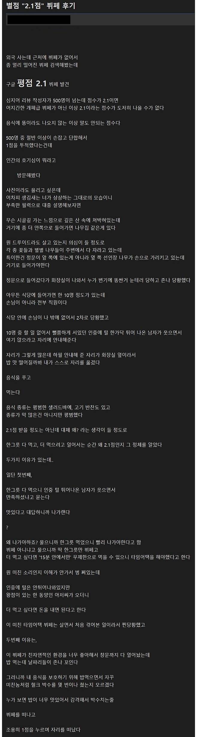 외국에 있는 별점 2.1개 짜리 뷔페 후기