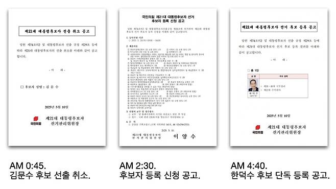 4시40분, 국민의힘이 한덕수가 유일한 대선 후보로 등록했다는 공고가 떴다.