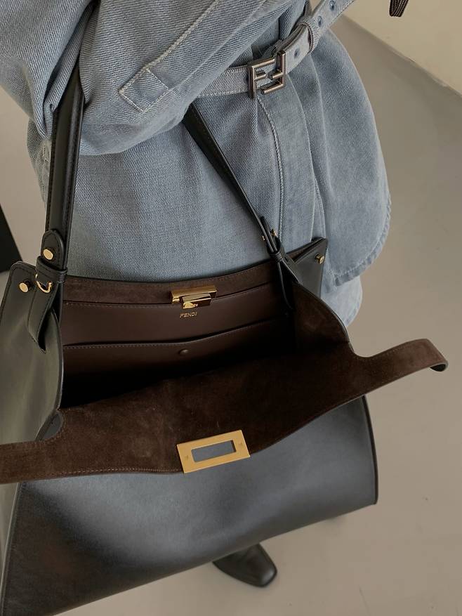 허리 라인을 벨트로 가볍게 잡아주어 슬림한 실루엣을 강조하면서도, 펜디 로고가 은은하게 새겨진 포켓 디테일로 럭셔리한 포인트를 놓치지 않았어요.