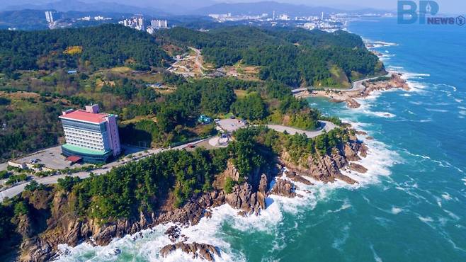 도로 위로는 기암절벽과 해송 숲, 바닷물에 닳은 암반이 연속적으로 이어지고 그 틈마다 바다 내음 가득한 바람이 불어온다.