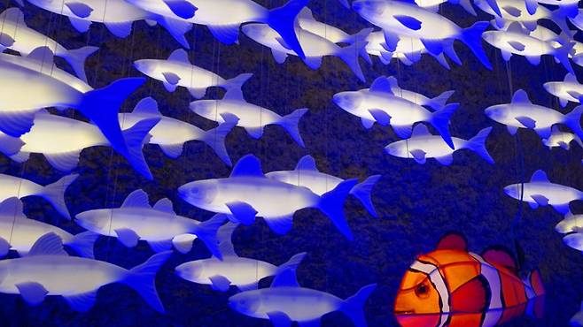 이어서 만나는 ‘스케치 아쿠아리움’은 벽면에 직접 그림을 그리고, 그것이 스크린 속 수중 세계에서 살아 움직이는 장면으로 이어지는 인터랙티브 체험 공간이다.