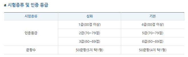- 1급: 80점 이상, 2급: 70점 이상 - 기본(4~6급): 교양·학생용 성격