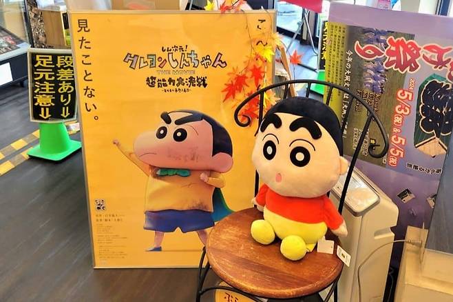 카스카베역 동쪽 출구로 나와 도보 5분 정도면 만날 수 있는 카스카베 관광안내소입니다. 역시나 떡잎마을 답게 짱구는못말려와 관련된 요소들과 극장판 홍보, 실제 배경지 등을 자세하게 안내받아 볼 수 있는데요.