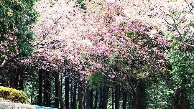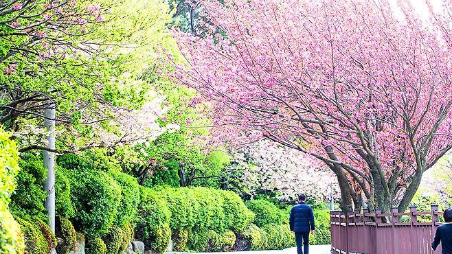 늦게 피어 더 화려한 겹벚꽃 산책로