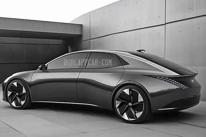 강렬한 숄더 라인이 차체 측면을 가로지르며 역동적인 실루엣을 완성했고, A필러와 C필러를 곧게 세워 전통적인 세단의 비율을 구현했다. C필러에는 신형 그랜저에서 선보인 두툼한 패널과 오페라 글래스를 적용해 고급스러운 디자인을 더했다.