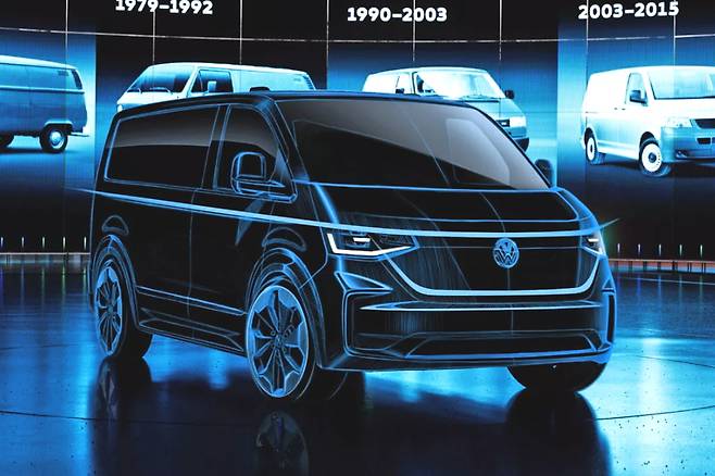 폭스바겐은 신형 트랜스포터(Transpoter) 티저를 30일(현지시간) 공개했다. 멀티 미니밴 신형 트랜스포터는 7세대 풀체인지로 폭스바겐 최신 디자인 언어가 반영된 세련된 외관, 디젤과 플러그인 하이브리드, 전기차 등 다양한 파워트레인이 특징이다. 내년 1분기에 공개된다.