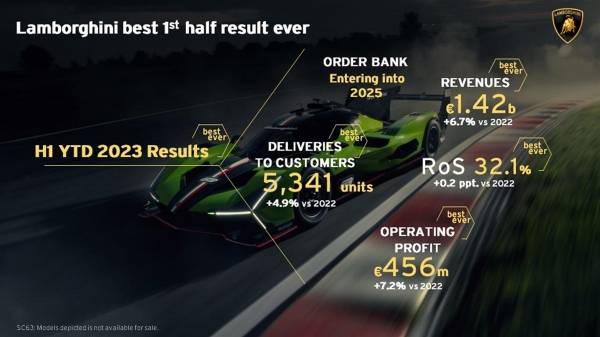 람보르기니가 2023년 상반기 기록적인 판매 결과를 발표했다.