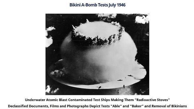 | ▲ 1946년 7월 비키니 환초에서 이루어진 핵실험 |