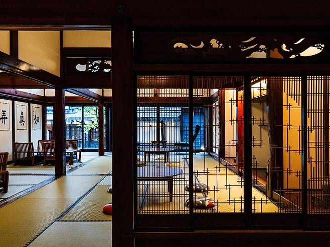 류곤(Ryugon)은 자연과 지역, 인간의 상생을 테마로 한 니가타 여행에 딱 어울리는 숙소다. 270년 전 에도 시대에 지은 건물을 포함해 니가타현의 고민가(古民家) 11채를 이축해 문을 연 료칸으로, 2019년 전면 리뉴얼하면서 눈이 많이 내리는 이 지역의 고유한 전통과 문화에 초점을 맞췄다. 폭설을 견딜 수 있도록 지은 건축물, 저장 음식 등 환경적 제약을 극복하며 살아온 현지인들의 지혜를 엿보는 흥미로운 경험을 제안한다. 인근 양조장에서 공수한 신선한 사케와 지역 향토 요리를 즐길 수 있는 바와 레스토랑, 온천 시설을 갖췄고, 통유리창 너머로 사계절의 매력을 즐길 수 있는 라운지 공간도 아름답다.