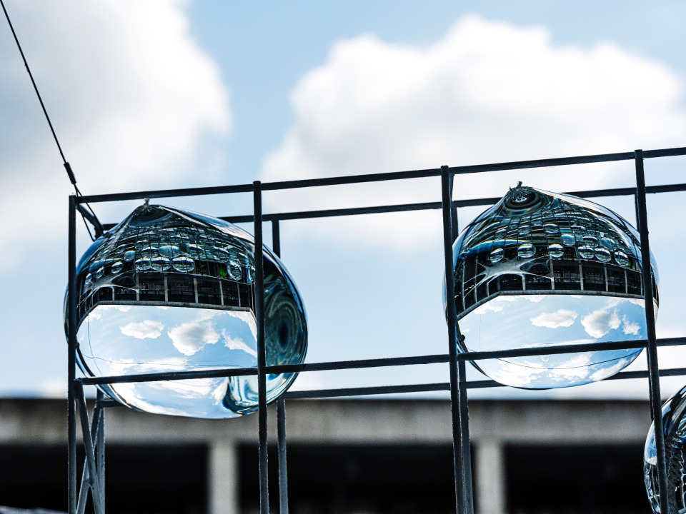 *프랑스 예술가 장뤽 빌머스(Jean-Luc Vilmouth)의 작품으로, 현지 주민들이 1년 동안 집에서 촬영한 창밖 풍경 사진을 모아 원형 조명 기구에 설치하고 테이블 위 거울에 반사되도록 했다.