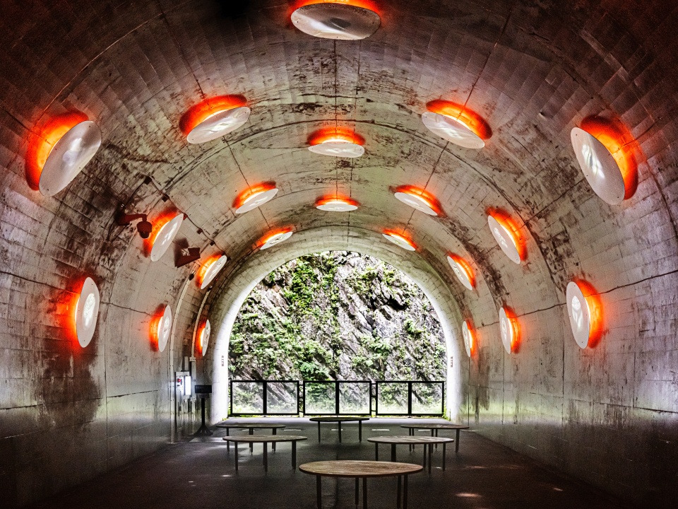 도카마치시 서쪽, 기요쓰강을 따라 깎아지른 V자 협곡이 12.5킬로미터 길이로 이어진다. 구로베협곡(黒部峽谷), 오스기다니협곡(大杉谷)과 함께 일본의 3대 협곡으로 꼽히는 기요쓰협곡. 1,500만 년의 세월이 깊숙이 새겨진 명소다. 1996년 관광용으로 개통한 기요쓰협곡 터널은 대지예술제를 통해 ‘빛의 터널(Tunnel of Light)’로 거듭났다. 총길이 750미터의 터널 내부는 자연의 다섯 요소(나무 · 흙 · 금속 · 불 · 물)를 키워드로 나뉘어 각 구간마다 색다른 분위기를 전달한다. 터널 끝에 이르면 바닥에 얕게 깔린 물 위로 스테인리스를 두른 터널 아치와 그 너머 협곡이 고스란히 반사돼 안팎의 풍경이 확장되는 색다른 광경을 마주할 수 있다. nakasato-kiyotsu.com