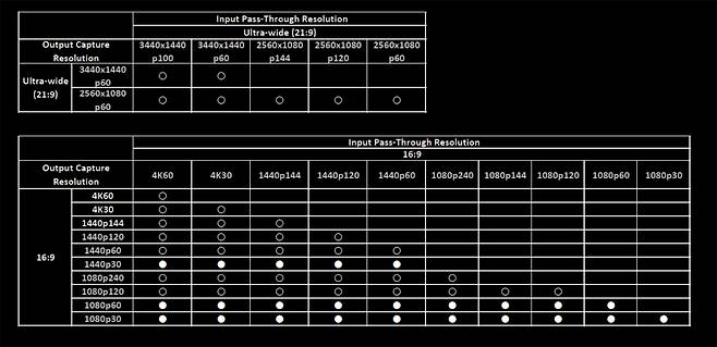 해상도 출력 단위는 4k 144hz까지 출력되는 것으로는 나오지만 실제 영상 저장은 4k 60hz까지 가능합니다. <GC553Pro PC캡쳐보드 기준>