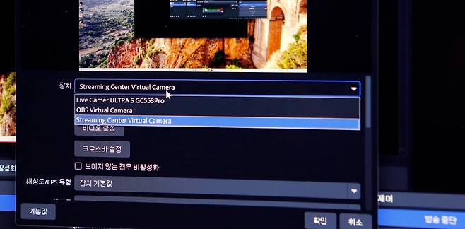 세번째: 라이브 방송 진행시에 외부 기기 영상을 직접 송출도 가능하며 PC화면과 함께 송출이 가능합니다.