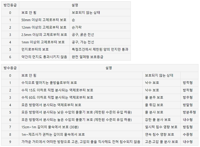 이 제품의 가장 큰 특징은 방수 기능입니다. 무려 IP68이죠. IP68에서 IP는 방진방수 등급이라는 의미이며 첫번째 자리 숫자는 방진, 두번째는 방수를 의미합니다. 물론 숫자가 높을 수록 우수한 방진 방수 능력을 보여주죠. 방진의 경우 0~6까지 범위에 있고, 방수는 0~9까지 있습니다. 보통 방수가 된다는 아웃도어 스피커들이 대부분 방수 7단계를 지원하는데 비해 이 제품은 거의 끝판왕인 8단계이네요. 나무위키에서 찾아보니 방수 8단계는 연속적인 침수 환경에서도 보호를 하는 수중형이라고 합니다. 구체적인 사양은 몰라도 중요한 것은 물 속에서도 끄떡없다는 것입니다.