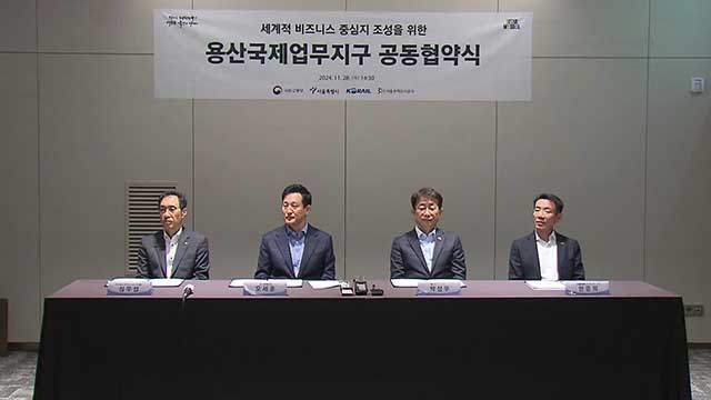 서울시와 국토교통부, 한국철도공사, 서울주택도시공사는 오늘(28일) 서울 드래곤시티호텔에서 용산국제업무지구 개발을 위한 공동 협약을 맺었습니다.
