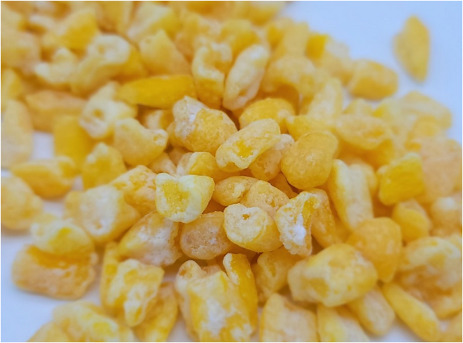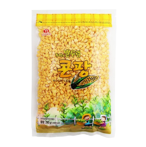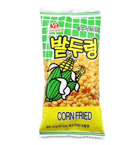 옥수수과자는 영진식품에서 만들고 있어요. 경상북도 경산시에 있는 공장은 지역에서는 꽤 오래된 제과 제조사로 알려져 있어요.