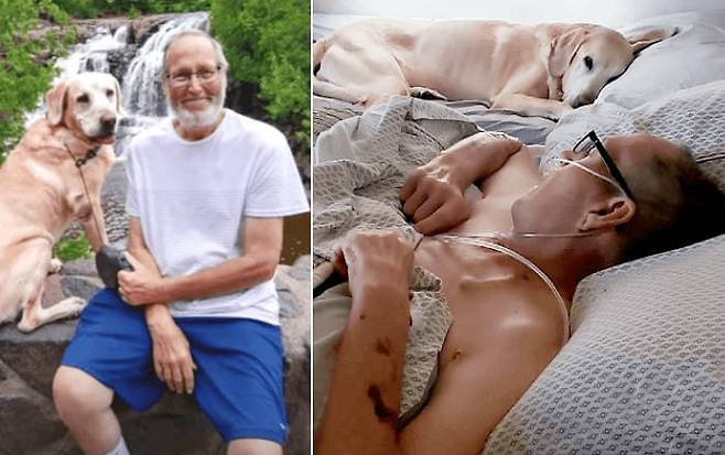 반려견 역시 누워있는 할아버지 곁을 떠나지 않고 지켜줬다는군요 그런데 이상하게도 11살인 노견이긴 하지만 아직 힘이 있을 나이임에도 불구하고 급격히 움직임이 줄어들고 있었는데요