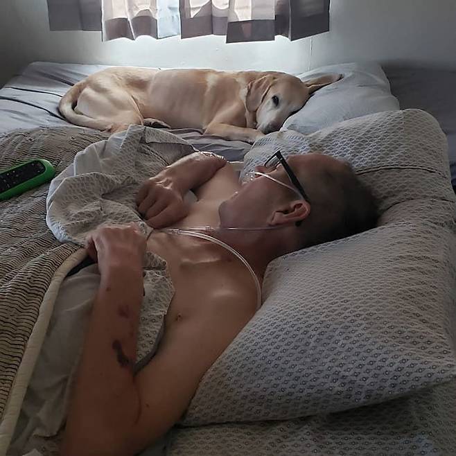 사실 견주 인 할아버지는 췌장암을 진단받은 말기암 환자였습니다 오랜기간 투병을 했고 지금 사진속의 모습이 마지막 모습이었다는데요