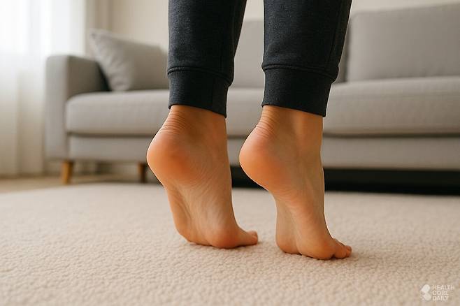 카프 레이즈는 종아리 근육을 강화해 정맥 순환을 원활하게 만든다. 하체 혈류가 개선되면 산소 공급이 좋아지고, 자세 안정에도 도움이 된다. 어깨너비로 서서 발뒤꿈치를 천천히 들어 올렸다 내리는 동작을 반복한다. 1세트 8~20회, 총 3세트로 시작해 점차 강도를 높인다.