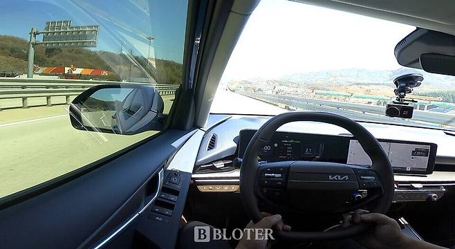 경부고속도로 진입 후 주행보조(ADAS) 기능도 활용해봤다. ccNC 클러스터는 도로의 실선과 점선을 빠르게 구분해 보여주는 그래픽을 갖췄다. 또 ‘핸들을 잡으십시오’ 경고가 나올 때 운전자가 스티어링 휠을 살짝 잡으면 경고가 해제되는 ‘스티어링 휠 그립 감지’ 기능도 담겼다. 다만 운전자의 전방 주시 여부를 파악하는 눈동자 감지 센서는 부분변경된 니로 하이브리드에 적용되지 않았다.
