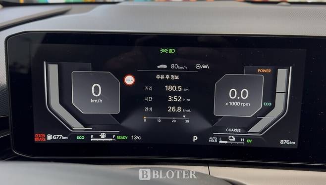 원주에서 서울로 돌아오는 길에는 정체 구간이 많았다. 그러나 저속 주행 시 엔진 개입이 많지 않은 하이브리드 특성상 연비 하락 폭은 크지 않았다. 서초구 주유소에 도착했을 때 클러스터상 연비는 26.8㎞/ℓ였다.