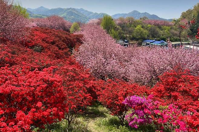 1만 5천㎡에 달하는 이 꽃동산에는 철쭉, 겹벚꽃, 배롱나무, 황매화 등 1만여 그루의 꽃나무가 식재되어 있어, 4월 중순부터 5월 초까지 매년 아름다운 꽃의 향연이 펼쳐집니다.