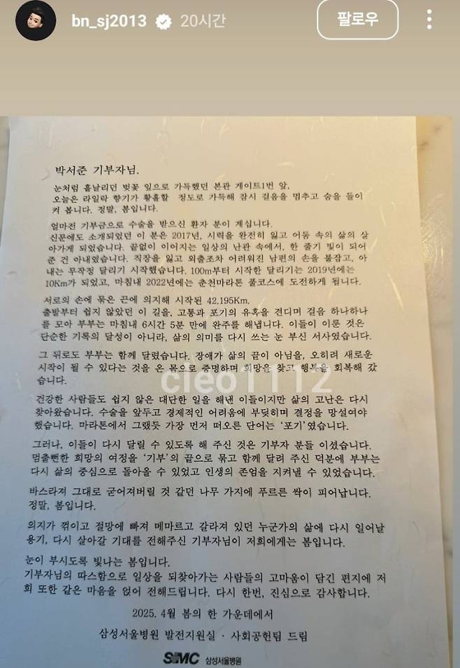 삼성서울병원 사회공헌팀 역시 박서준 씨에게 진심으로 감사를 표하는 편지를 전달하며 훈훈함을 더했습니다. 기부자 박서준 씨, 이를 연결한 사회공헌팀, 그리고 희망을 얻은 환아 가족 모두에게 따뜻한 응원을 보내고 싶습니다.
