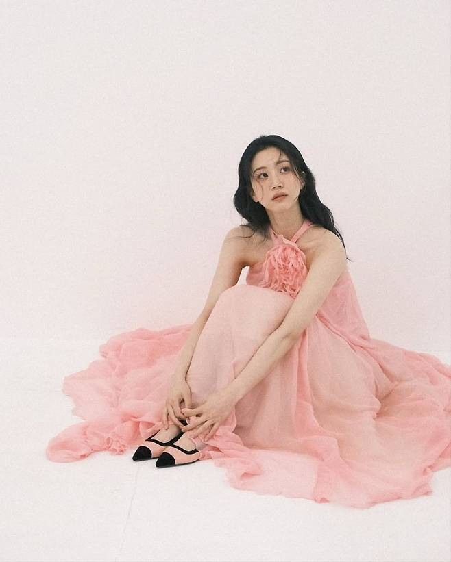 인스타그램 속 홍화연이 마치 한 폭의 그림처럼 우아한 핑크 드레스 자태로 시선을 사로잡았다. 깨끗한 화이트 배경 위에 앉아 먼 곳을 응시하는 홍화연은 로맨틱하고도 몽환적인 분위기를 연출하며 독보적인 존재감을 드러냈다.