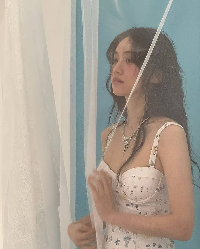 시선을 끄는 또 하나의 요소는 슈즈다. 블랙 토 캡이 들어간 핑크 스트랩 플랫 슈즈는 드레스의 로맨틱함을 방해하지 않으면서도 모던한 무드를 가미해 균형 잡힌 스타일링을 완성했다. 전체적인 룩은 마치 패션 화보 속 한 장면처럼 연출됐으며, 댓글창에는 “이대로 화보 내줘야 해”, “천상 여신 같다”는 반응이 줄을 이었다.