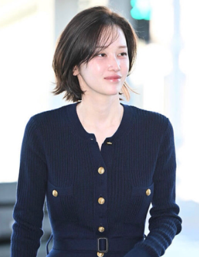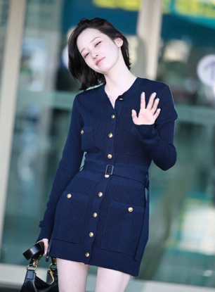 퇴폐미의 대명사 배우 전종서는 자신의 황금골반과 글래머러스한 몸매라인을 강조하는 네이비 색상의 끌로에 니트 원피스를 착용했다.