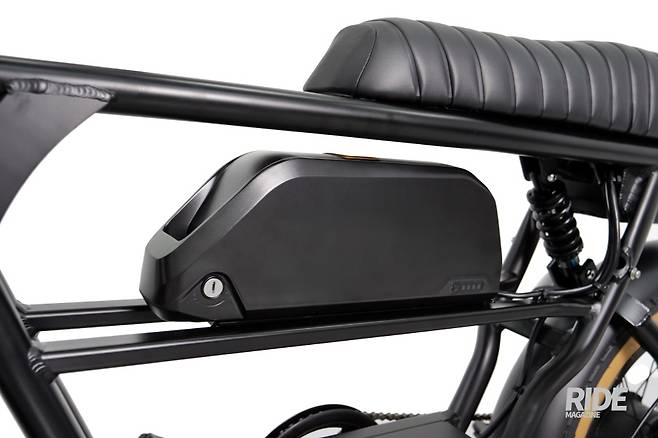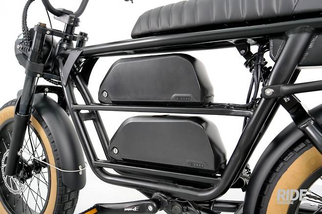 프레임에서 가장 눈에 들어오는 부분은 두 개의 배터리를 수평으로 안정적으로 장착할 수 있는 공간인데 한 개의 배터리를 장착하던 두 개의 배터리를 장착하던 디자인이 매우 잘 어울린다. 비슷한 모델들이 시트 앞이나 자전거로 치면 다운튜브 부분의 위치에 대각선으로 비스듬히 추가 배터리를 장착하기도 하는데 B8 프레임처럼 디자인적으로 안정적인 모습은 아니다. 물론 배터리를 장착할 수만 있으면 됐지 공간이나 디자인이 무슨 상관이냐고 말하는 사람이 있을 수도 있겠지만 디자인적으로 안정적이고 잘 어울리는 모습은 제품에서 디자인을 우선하는 사람들에게 매우 큰 차이점이자 장점이기도 하다.