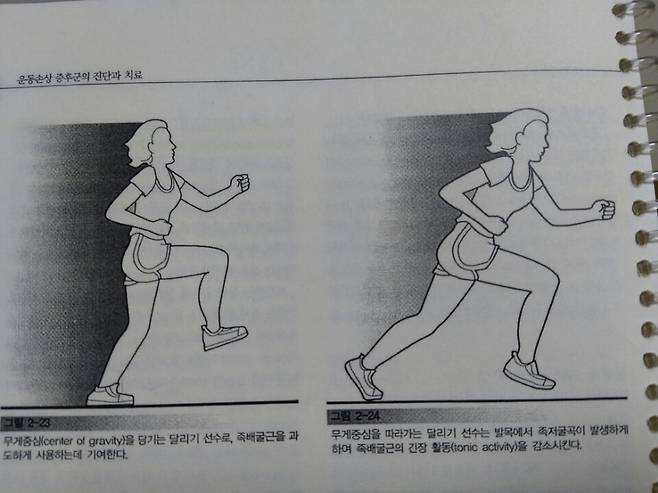 달리기 시 발의 앞쪽보다 뒤쪽 가까이에 무게중심을