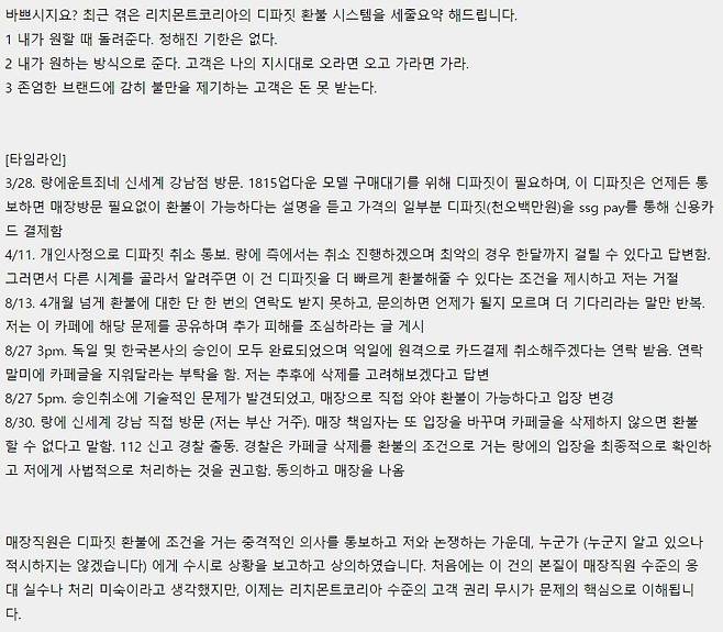- 근데 이 매장에서 환불을 안해주고 다른시계를 예약하면 빠르게 환불해주겠다고함. 당연히 거절