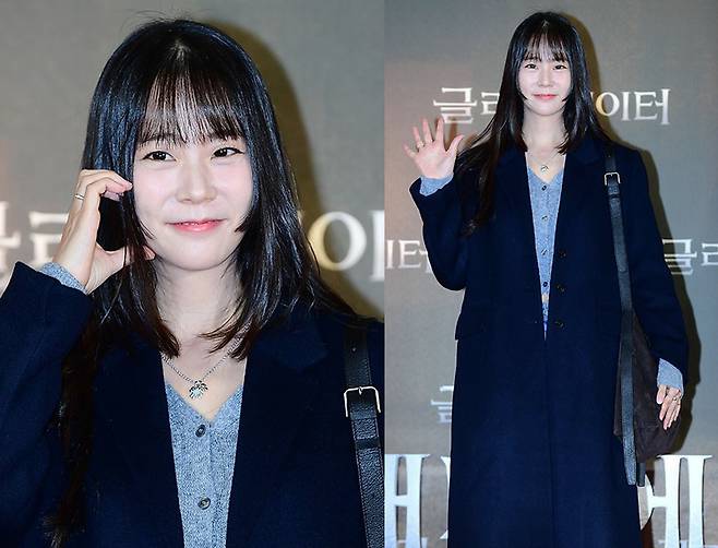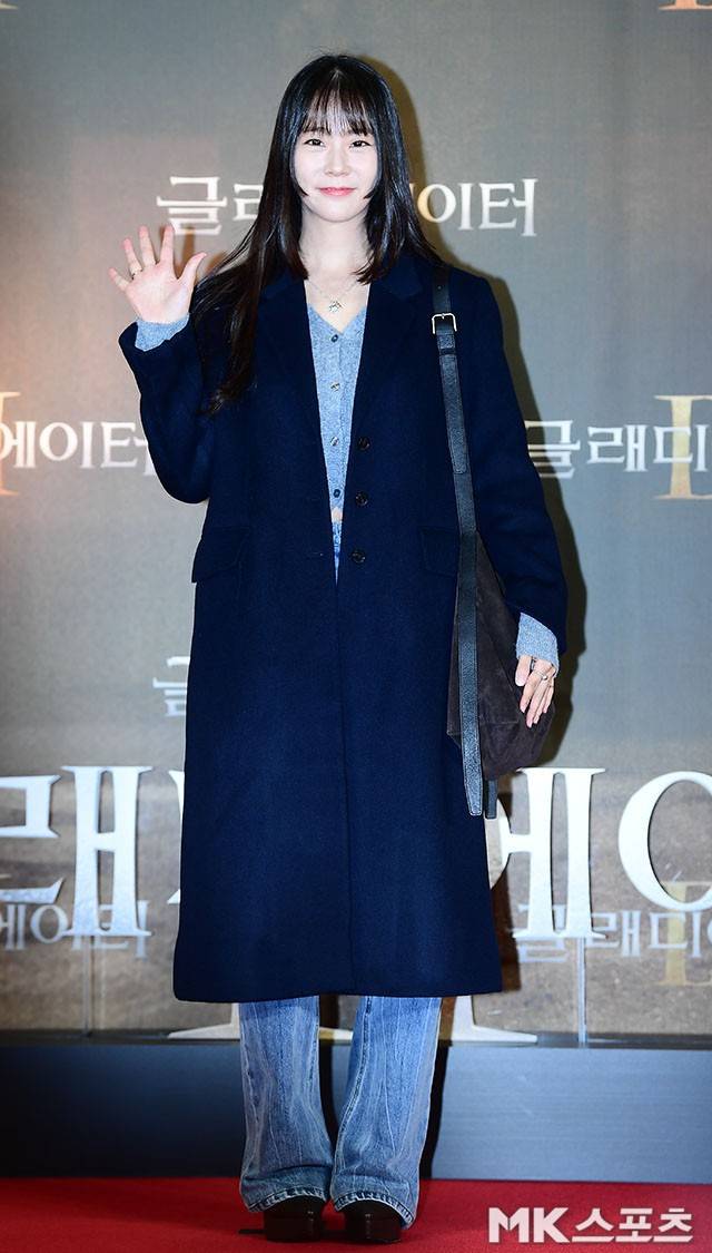 한승연은 네이비 롱 코트를 선택해 단정하면서도 세련된 무드를 연출했으며, 그 아래는 편안한 핏의 데님 팬츠로 캐주얼한 코디를 완성했습니다.