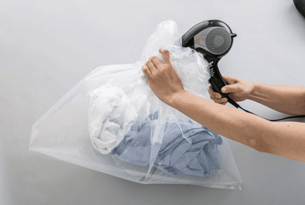 지퍼백은 단순히 밀폐 보관용으로만 사용하는 게 아니다. 내부의 공간을 좁고 일정하게 유지하면서 드라이기의 열풍이 특정 방향으로 집중되게 해주는 역할을 한다. 즉, 열기가 사방으로 퍼지지 않고 옷 표면에 밀착되어 작용하게 만드는 효과를 주는 것이다. 또한 밀폐된 공간 안에서 열기가 순환되며 자연스럽게 ‘미니 건조기’와 같은 환경이 만들어진다.