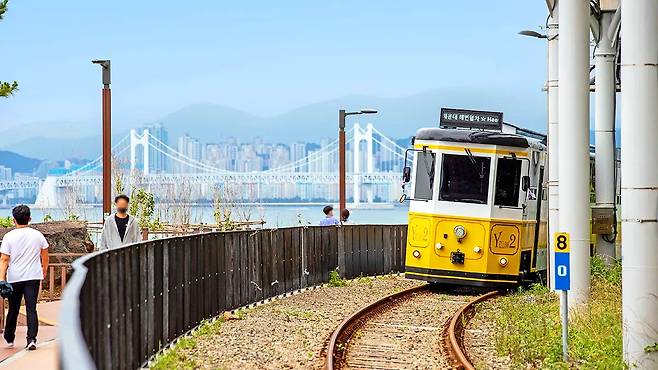 해운대 해변열차는 시속 15km의 속도로 천천히 달리며 해안 풍경을 감상할 수 있는 2량짜리 관광열차다. 모든 좌석이 바다를 향하고 있어 어느 자리든 탁 트인 전망을 즐길 수 있다.